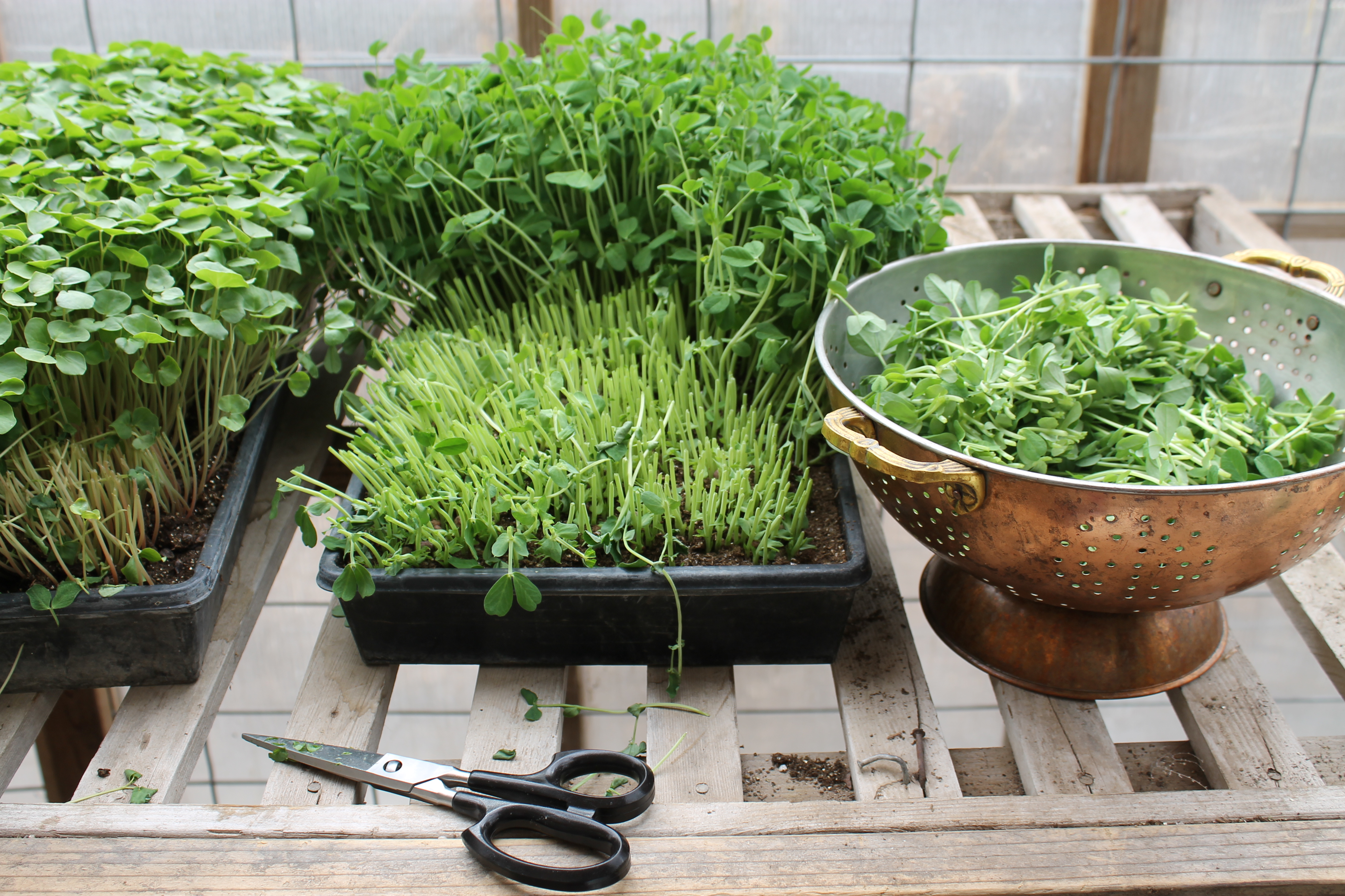 Peas Shoots ( field peas work great and are cheaper than snow pea seed)