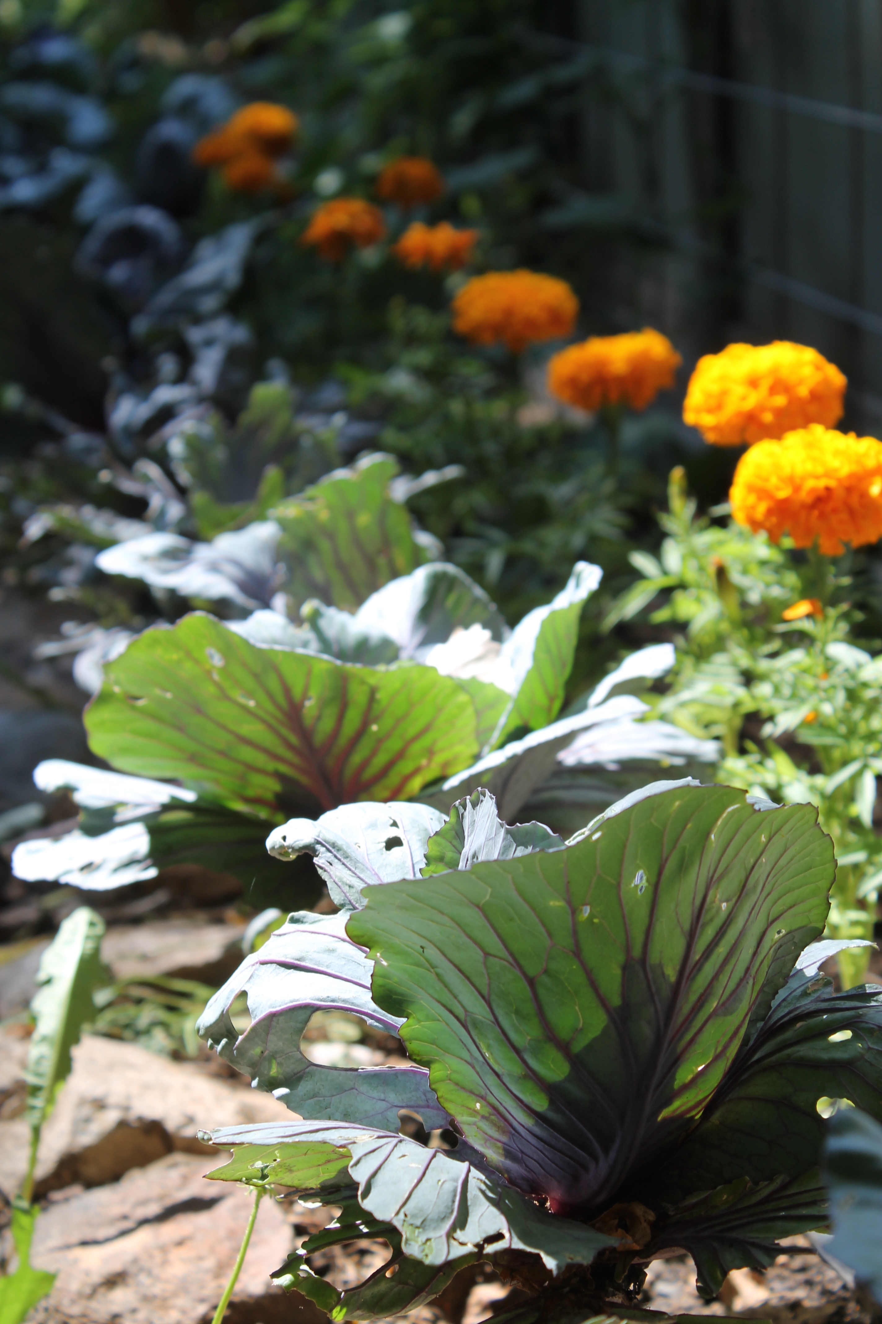 If you are doing succession planting in your garden planning, timing and leaving space for the future is everything!! You have to think about how long it will take for a head of lettuce to produce,(about 60 days in the spring) and then plan what you will pop in its place once harvested. In these pictures above and below you can see I planted Cabbage babies among the cut and come again Lettuce, so that by the time the Lettuce is bitter the Cabbage will take over.
