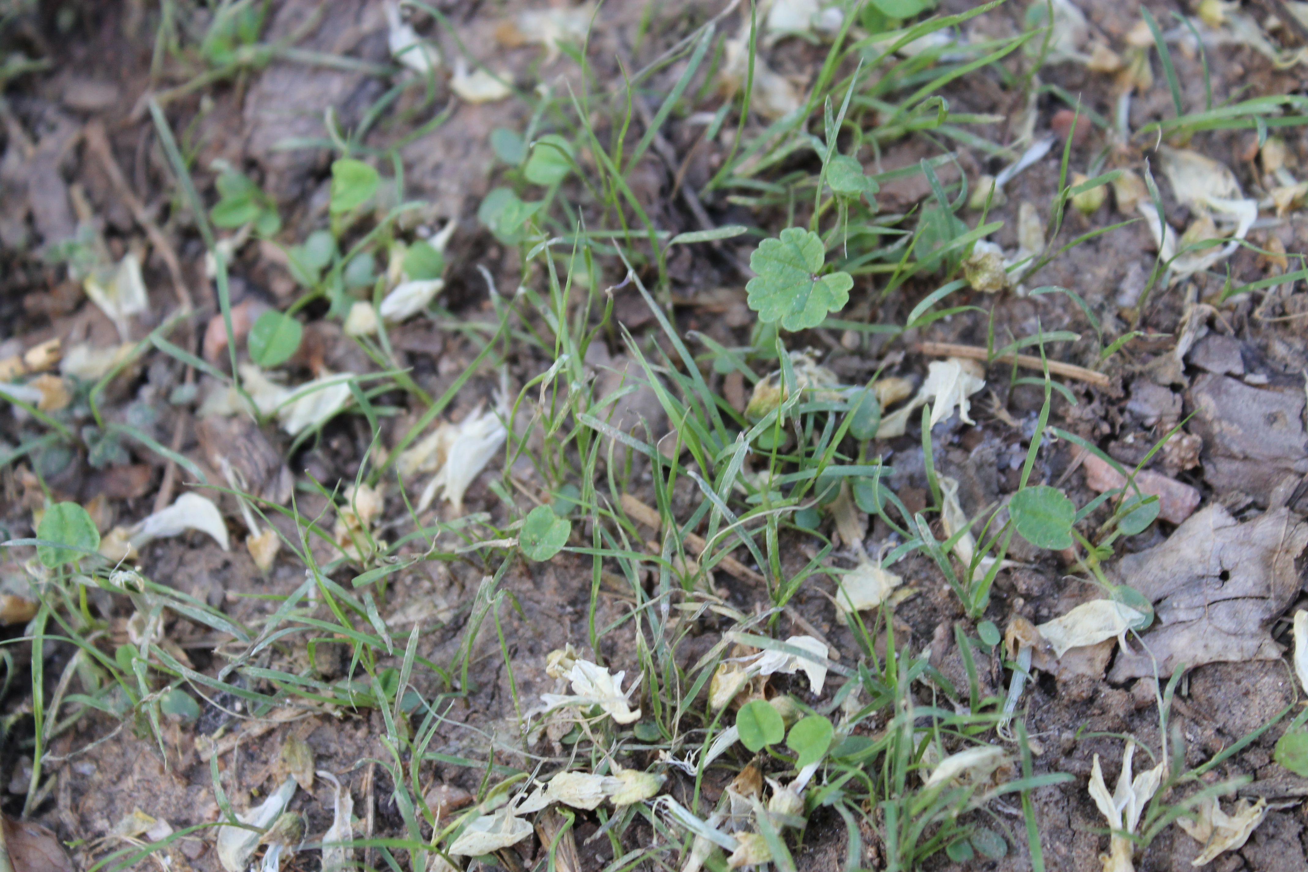 were already growing here. They are hardy weeds, trouble for some if you are trying to rid your farm of them, but soft under foot and welcome here. They grow low under heavy traffic and take to mowing quite nicely. We used what was here as nurse crops and planted in plugs of Buffalo Grass, Chamomile, Creeping Thyme, and Yarrow