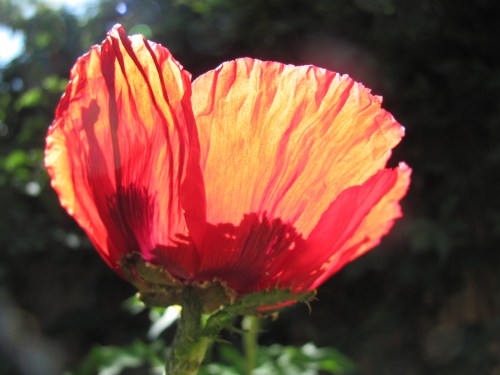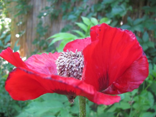 …But as I planted and watered and doted on my beloved flowers I got an amazing show from the Oriental Poppy off in the corner of the garden, minding her own and only business of blooming.