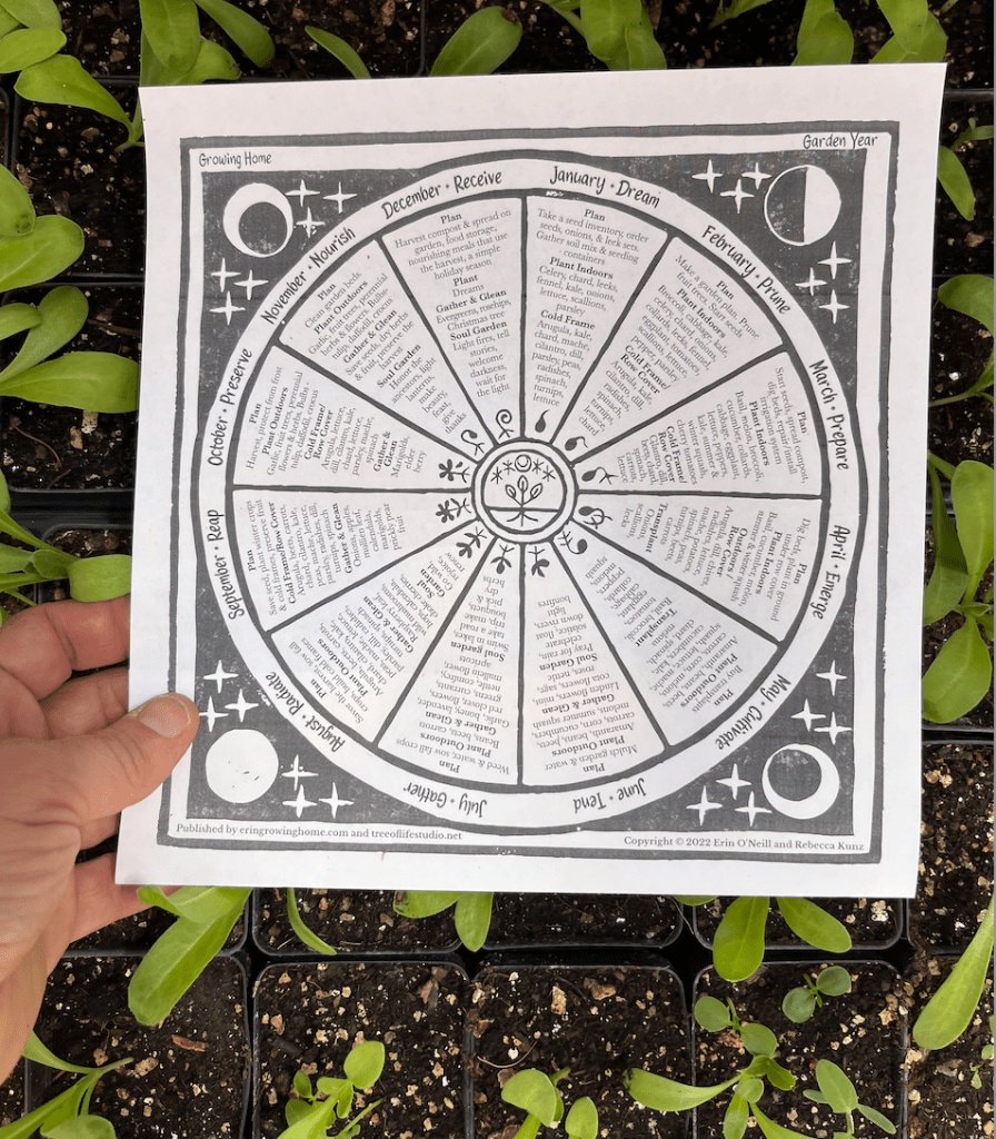 But perhaps most importantly if you sign up for my Erin Growing Home Newsletter you will receive my latest and most dearest project, a carefully crafted Planting Calendar which is the culmination of 20 years of great attention paid to gardening like it’s my job! I worked very closely with an amazing artist and dear friend of Tree of Life Studio to create this beauty and we are both very pleased with our baby.