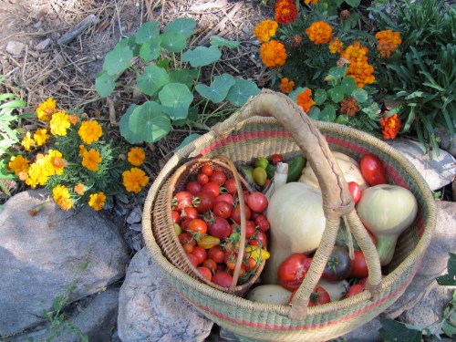 The garden hasn’t gotten a lot of attention these days, expect for daily journeys to the Tomato/Basil patch for harvesting (Caprese salad, Pesto, Pizza Sauce oh MY!!)….But besides extraction I haven’t given it much attention.  Today however, after an epic canning journey (whole peaches in Honey Mint Syrup, mmmmm) I just had to get away from the stove and into the dirt.