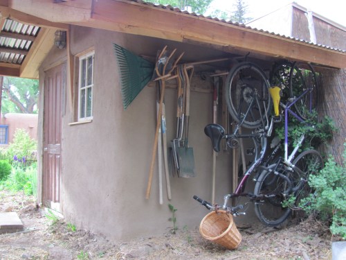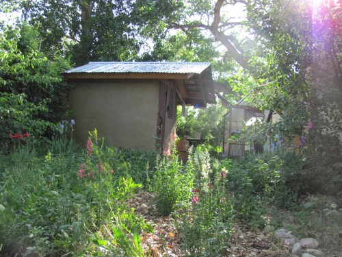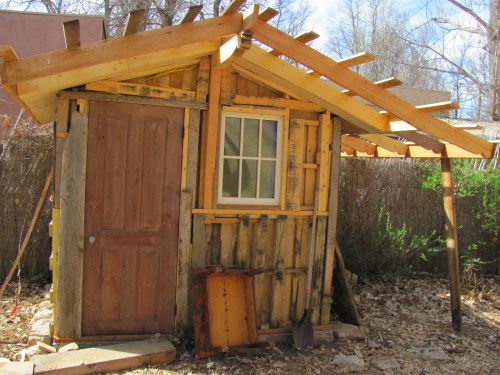 It was built out of old shipping pallets and mud and straw…there is a whole blog post about the shed here, check it out, it is awesome!