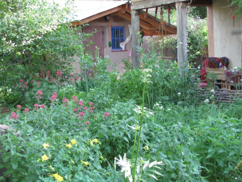 And back to the beginning, the front garden is mostly flowers, herbs and medicinals that are cycling through at different times of the year, mostly a spring garden but it gets lots of action all through the year with the sand box right in it.