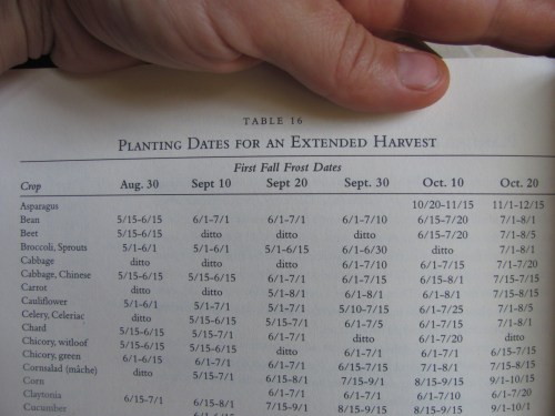 Now if you like charts there is a great one Eliot Coleman has in the back of his book, Four Season Harvest on when to sow fall plantings.