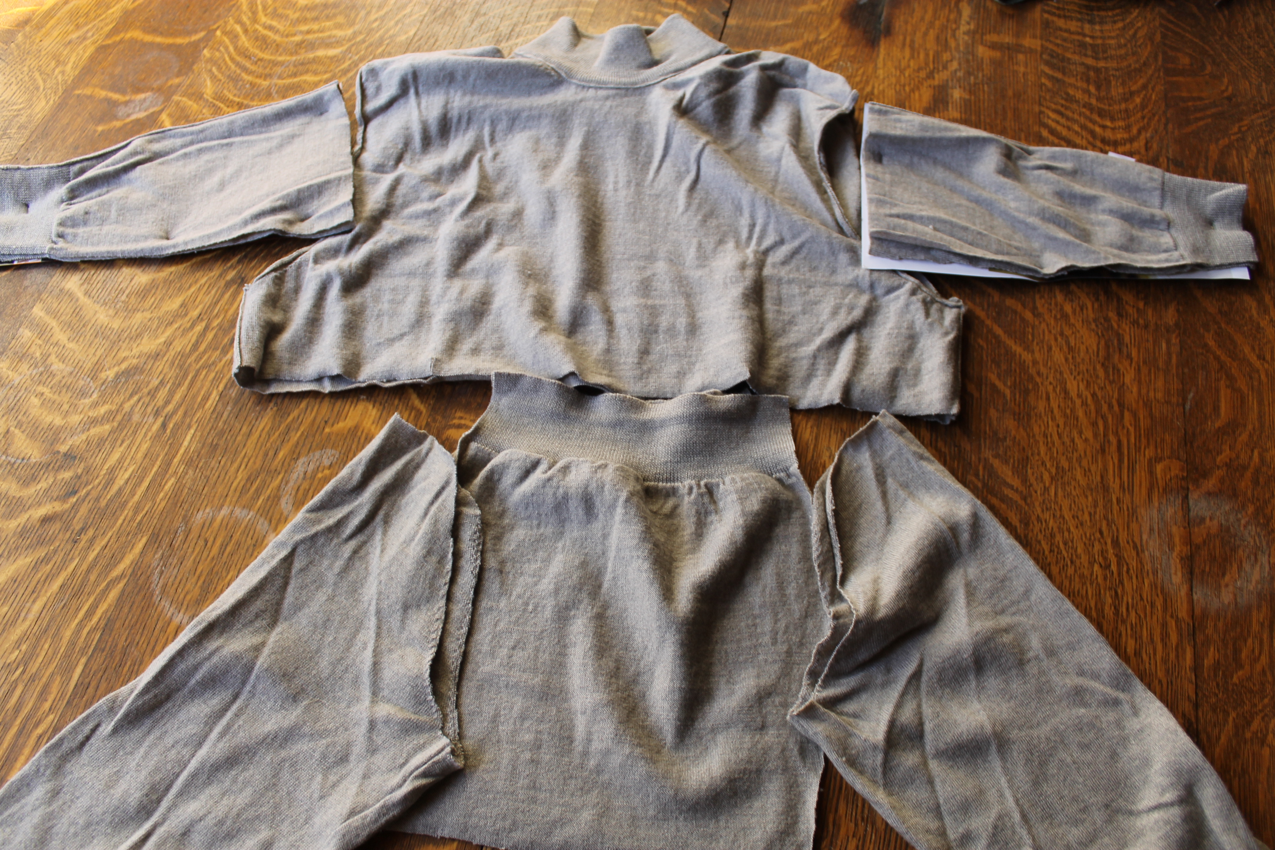 It looked like it had been shrunk so no grown man could wear it, but it was perfect for us. I did some made up in the moment moves to leave on the collar, button strip and wrist cuffs. I just cut off the sleeves and reattached them much closer in. I then sewed up the sides to fit a 18 month old and hemmed it appropriately.